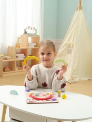 Descoperiți magia unui joc care combină puzzle-ul de inserție și jocul de echilibru într-unul singur. Este alcătuit dintr-o bază și 14 piese de inserție. Lăsați copiii să-și testeze răbdarea și creativitatea prin așezarea pieselor colorate una peste alta.