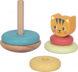 Jucăriile sunt fabricate din lemn certificat FSC® și sunt vopsite cu culori netoxice, care au nuanțe blânde și culoarea naturală a lemnului. Acest set este potrivit ca un cadou și garantează distracție și siguranță pentru copii de la vârsta de 1 an.