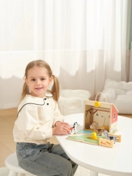 Fabricată din lemn certificat FSC, ceea ce asigură respectul față de natură. Mânerul practic permite un transport ușor și, datorită culorilor vii combinate cu lemnul natural, grajdul este o piesă estetică excelentă pentru orice cameră de copii.