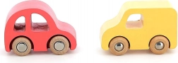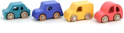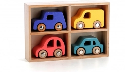 Mașinuțele fac parte din gama Vilacity, axată pe transport și mijloace de transport, iar toate piesele sunt compatibile între ele. Fabricate din lemn masiv, ceea ce asigură durabilitate lungă, mașinuțele sunt așezate într-un suport din lemn, care va fi un accesoriu excelent pentru camera sau sala de joacă a copilului.