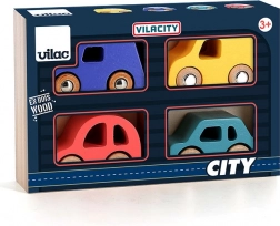 Pregătiți-vă pentru curse cu Vilac Set de 4 mașinuțe din lemn City Vilacity. Aceste mașinuțe sunt ideale pentru micii șoferi care doresc să-și dezvolte abilitățile motrice și creativitatea. În timpul jocului, copiii învață să imite sunetele motoarelor, să parcheze în garaj sau să facă plimbări.