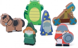 Cu setul de figurine din lemn de la Vilac, copilul dumneavoastră se va transpune într-o lume fantastică a castelelor, cavalerilor și prințeselor. Jocul cu aceste figurine inspiră crearea de povești pline de curaj și aventură, ceea ce susține dezvoltarea imaginației și creativității.