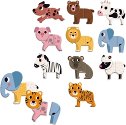 Setul de magneți Vilac Animale Amuzante constă în zece animale, fiecare format din trei piese. Combinați-le după imaginația voastră și creați combinații unice și amuzante de animale - cum ar fi cap de tigru, corp de vacă și coadă de elefant. Datorită acestui set de jucării, nu există limite în ceea ce privește creația și imaginația dumneavoastră.