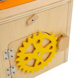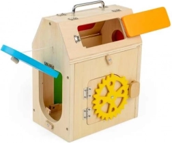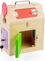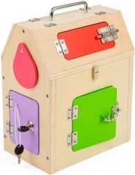 Placa de activități Bigjigs Toys - Căsuță este o jucărie multifuncțională destinată copiilor mici. Lăcățișurile și labirinturile preferate oferă ore întregi de distracție și dezvoltă abilități esențiale: