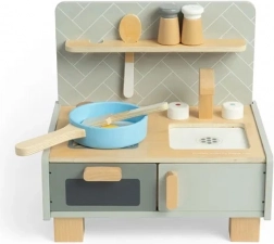Designul compact în culori neutre și delicate se potrivește perfect în orice cameră de copii sau sală de jocuri. Este fabricată din lemn certificat FSC® și vopsită cu vopsele non-toxice, garantând o distracție sustenabilă și sigură pentru copiii de la 3 ani. Pe lângă distracție, această bucătărie sprijină dezvoltarea imaginației și creativității, în timp ce copiii imită rolurile de bucătărie.