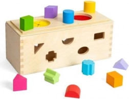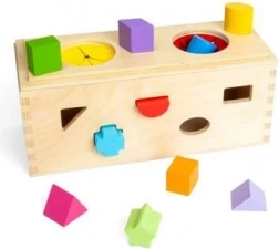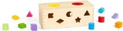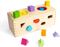 Îmbogățiți sensibilitatea senzorială a copiilor dvs. cu această cutie misterioasă din lemn. Plasați cele 10 forme în găurile corespunzătoare de pe pereții cutiei. Prin două deschideri în partea superioară, copiii pot introduce mâinile, simți și recunoaște formele din interiorul cutiei, îmbunătățindu-și abilitățile motorii și coordonarea mână-ochi.