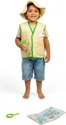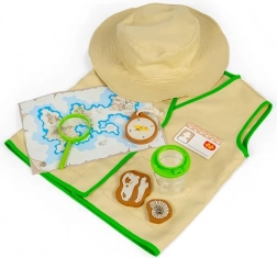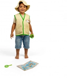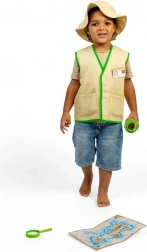 Costumul de explorator este ideal pentru a dezvolta imaginația și creativitatea. Include vestă, pălărie, insignă cu nume, hartă detaliată, lupă, fosile de lemn, busolă și o lupă specială pentru observarea insectelor, asigurând distracție grozavă și învățare.