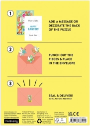 Oferim un puzzle unic de 12 piese de mărimea unei vederi, care va încânta nu doar copiii de la trei ani. Este o modalitate interesantă de a trimite o felicitare de Paște. Pe o parte vă puteți bucura de o frumoasă ilustrație a sărbătorilor de primăvară, iar pe cealaltă parte aveți spațiu pentru a scrie propria felicitare personalizată de Paște.< /p>