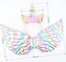 Acest costum de unicorn este alegerea ideală pentru Halloween, carnaval sau petreceri tematice. Setul include bentiță cu urechi și corn proeminent, completată de aripi curcubeu. Copilul tău se poate transforma într-o creatură magică pe care toți o vor recunoaște imediat.