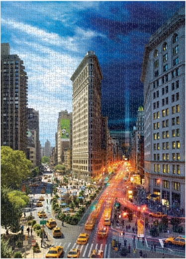 Descoperă iconicul cartier Flatiron din New York într-o fotografie impresionantă de Stephen Wilkes din seria Day to Night. Acest puzzle de calitate, cu 1000 de piese, redă tranziția fascinantă de la zi la noapte, tăieturi precise cu piese solide și o producție responsabilă din materiale reciclate certificate FSC®, imprimate cu cerneluri netoxice.
