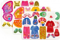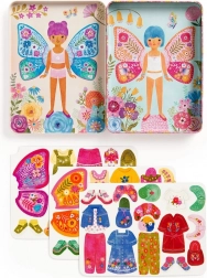Setul include două scene ilustrate cu domnișoare fluturi care așteaptă să fie îmbrăcate. Încercați mai mult de 40 de magneți cu haine și aripi de fluture pe trei carduri. Fiecare piesă poate fi combinată conform propriei imaginații.