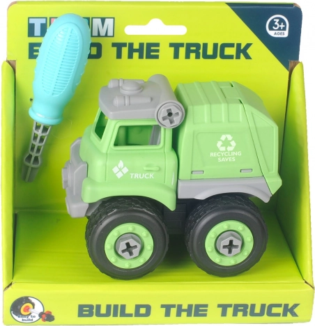 Bucurați-vă de distracție cu această mașină de gunoi de asamblat, ideală pentru micii mecanici!