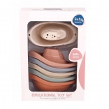 Vă prezentăm uimitorul set de bărci pentru cadă, care conține în total 6 bărcuțe ideale pentru baie copii. Fiecare bărcuță este colorată și atrage spre jocuri imaginative în apă. Copiii dumneavoastră se vor distra la nesfârșit aranjând bărcuțele pe apă și urmărind cum se mișcă pe suprafața apei. Aceste bărcuțe sunt ideale pentru dezvoltarea motricității fine și a imaginației.