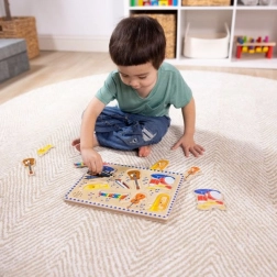 O jucărie distractivă și educativă care îmbină elementele de puzzle și sunete. Fiecare piesă a acestui puzzle reprezintă un alt instrument muzical și, atunci când este plasată în locul potrivit, emite sunetul corespunzător. În acest mod, copilul poate descoperi lumea muzicii și poate învăța să recunoască instrumentele după sunet.