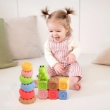 Acest set de construcție Montessori și piramidă senzorială este alegerea perfectă pentru părinții care doresc să-și implice copiii în jocuri interactive și senzoriale. Datorită materialului rezistent și sigur, aceste jucării sunt ideale nu doar pentru joacă, ci și pentru baie, deoarece nu au orificii, împiedicând astfel acumularea de apă în interior. Alte avantaje includ: