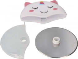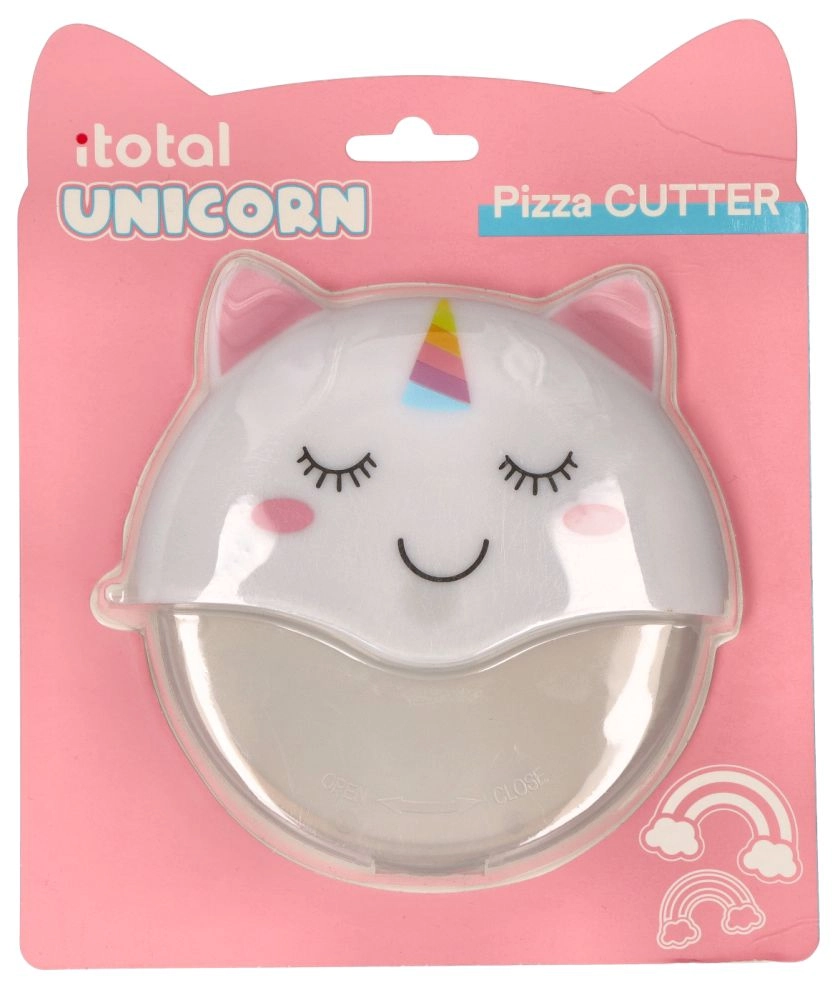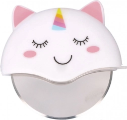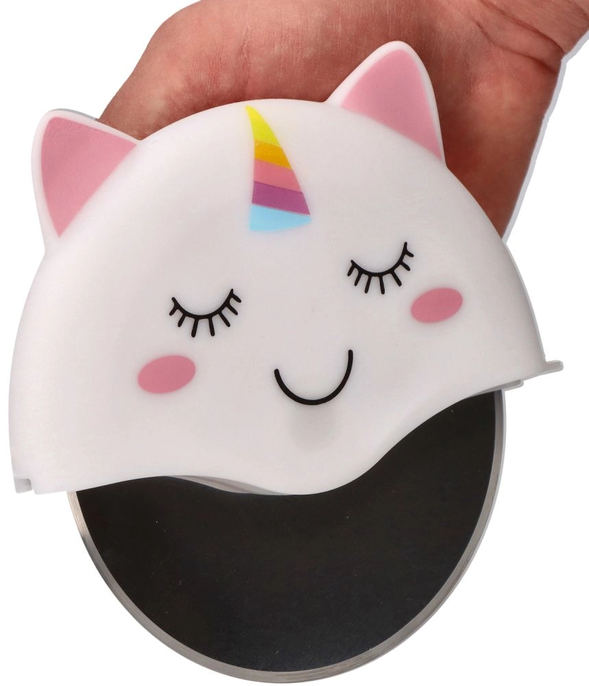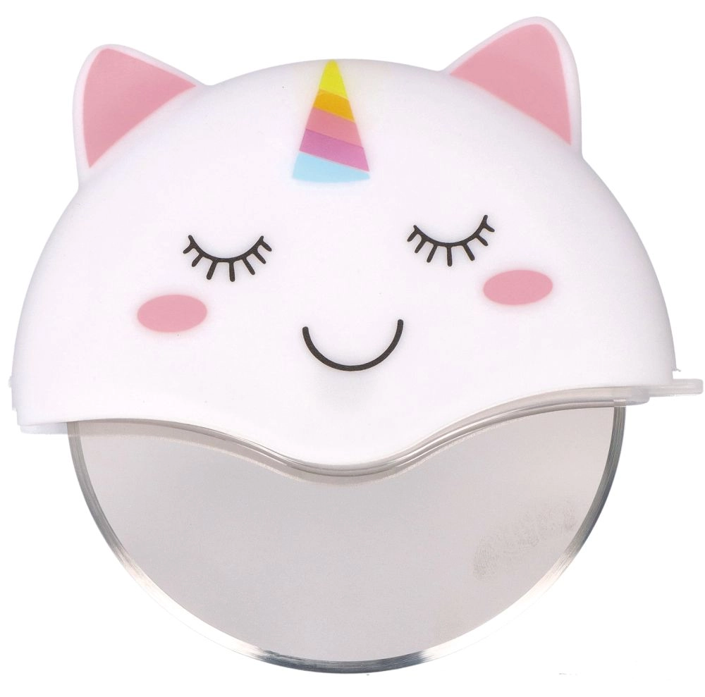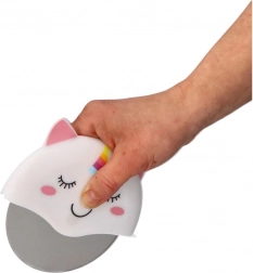 Acest tăietor de pizza original îi va încânta pe iubitorii accesoriilor amuzante pentru bucătărie. Discul din oțel inoxidabil cu diametru mare trece lin prin coaja crocantă și brânză, în timp ce mânerul solid din plastic rezistent oferă o prindere sigură. Unicornul drăgălaș cu corn în culorile curcubeului adaugă mesei tale o notă magică.
