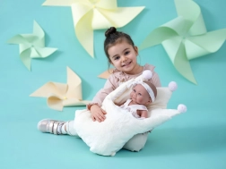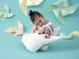 În atelierele spaniole, fiecare păpușă este creată cu accent pe calitate și aspect autentic. Potrivită pentru poziționare și având articulații mobile, poate sta și așezată. Toate acestea o fac o jucărie preferată pentru copii mici și mai mari de la 3 ani.