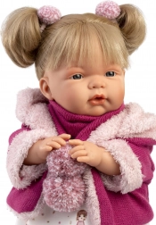 Descoperă uimitoarea păpușă Joelle de la brandul Llorens, care imită fidel un copil adevărat. După îndepărtarea suzetei, începe să rostească cuvintele „mama”, „tata” și emite un sunet realist de plâns, care poate fi liniștit cu suzeta magnetică. Este realizată manual în Spania și ambalată într-o frumoasă cutie cadou.