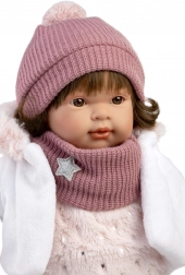 Pur și simplu scoateți siguranța și păpușa va începe să funcționeze imediat! După scoaterea suzetei din gură, păpușa va începe să rostească cuvinte simple și să producă sunete realiste de plâns. Copilul va învăța cum să liniștească plânsul folosind suzeta. Păpușa este realizată manual în Spania și livrată într-o cutie de cadou, ideală pentru orice ocazie.