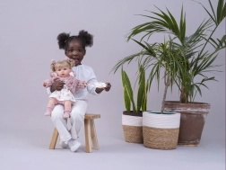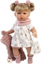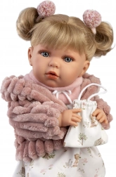 Păpușa Llorens Julia, cu construcția textilă moale și suprafața de vinil de calitate a capului și membrelor, oferă o experiență de joacă de neuitat. Când scoateți suzeta, începe să spună cuvinte precum „mama” și „tata” și emite sunete reale de plâns, care pot fi liniștite cu suzeta magnetică.