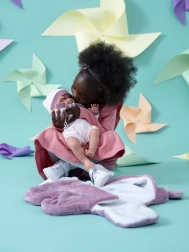 Bebelușul are corp din țesătură moale cu brațe și picioare articulate, permițând așezarea ușoară și poziționarea sa. Suzeta din pachet servește ca accesoriu atractiv. Păpușa este realizată manual în Spania și vine într-o cutie de cadou exclusivă.