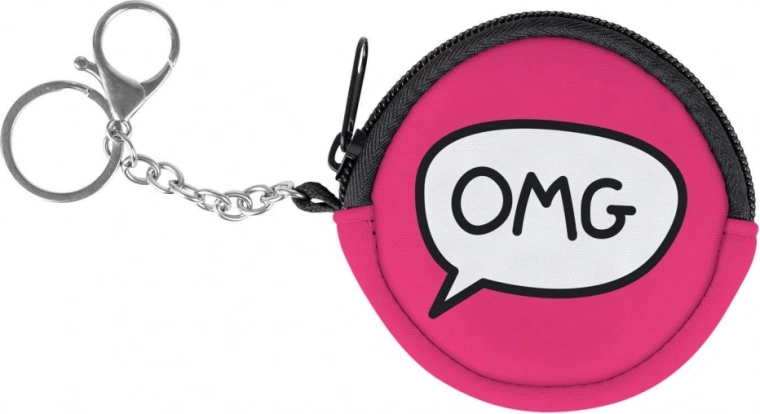 Portofel stilat Baagl OMG cu carabinieră și inel pentru chei, ideal pentru utilizare zilnică datorită formei rotunde.