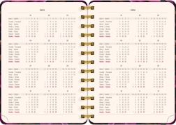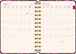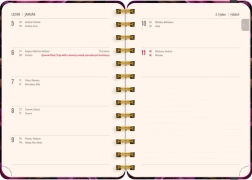 Agenda practică pentru 18 luni cu un design elegant cu motiv de flori violet. Ideal pentru oricine dorește să-și păstreze o evidență și o organizare pentru anii 2025/2026.