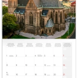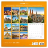 Calendarul include monumente iconice ale Pragăi, cum ar fi catedrale, poduri și străzi istorice.