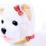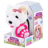 Jucăria imită comportamentul unui animăluț real: merge, dă din coadă, latră și scheaună și reacționează la atingeri și mângâieri.