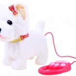 După conectarea lesei și apăsarea butonului, cățelușul pornește și latră – copiii îl pot plimba în casă sau la plimbări scurte.