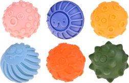 Fiecare dintre cele șase mingi are o formă și structură diferită și diverse protuberanțe care stimulează simțurile tactile și sprijină dezvoltarea receptorilor senzoriali. Acest lucru ajută la dezvoltarea coordonării și a abilităților tactile ale copiilor.
