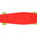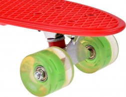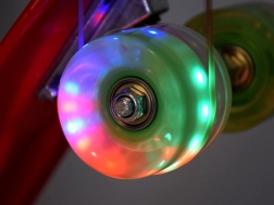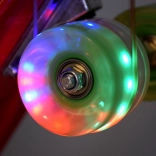 Roțile din material durabil cu înveliș de cauciuc asigură o aderență excelentă și amortizarea vibrațiilor. LED-urile încorporate care luminează în timpul călătoriei dau skateboard-ului un aspect unic și cresc vizibilitatea utilizatorului - fără a fi nevoie de baterii! LED-urile sunt alimentate de energia magnetică generată prin rotația roților.