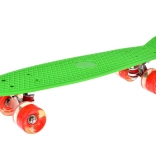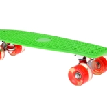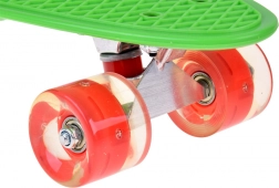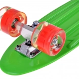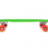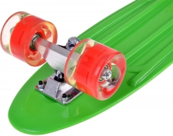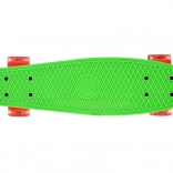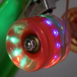 Roțile skateboardului sunt realizate din material durabil acoperit cu o gumă specială, oferind o aderență excelentă și amortizare a vibrațiilor. Alt atractiv sunt LED-urile integrate, care luminează în timp ce mergeți și oferă skateboardului un aspect deosebit, crescând vizibilitatea utilizatorului - fără a fi necesare baterii! LED-urile sunt alimentate de energie magnetică generată în timpul rotației roților.