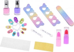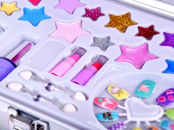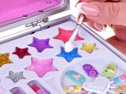 Cutia conține tot ce este necesar pentru un machiaj distractiv: lacuri de unghii, rujuri, farduri, aplicatoare, unghii false și autocolante. Pentru un machiaj mai ușor de efectuat, există și o oglindă înăuntru.