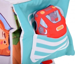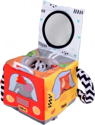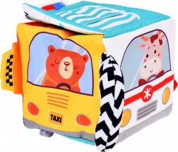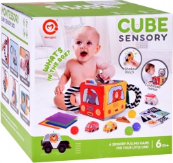 Descoperiți lumea fascinantă a jocului cu Cubul Senzorial Moale! Această jucărie interactivă captează și angajează permanent copilul, devenind un tovarăș fidel de-a lungul diferitelor etape de dezvoltare. Mai mult decât un simplu cub - este un instrument care crește efectiv odată cu copilul dumneavoastră. Bogăția de culori, diversitatea formelor și surprizele ascunse atrag mereu atenția și încurajează explorarea. Copilul descoperă noi texturi, scoate șervetele colorate, bile și cunoaște lumea fascinantă a vehiculelor și semnelor de circulație.