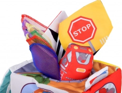- Mașinuțe moi: Mașinuțe din material textil care reprezintă vehicule precum Taxi, Pompieri, Poliție, Ambulanță, emit un sunet fin la apăsare, stimulând astfel simțurile auditive.
