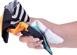 - 10 șervete pătrate, colorate, pentru a fi scoase din cub, pentru învățarea culorilor