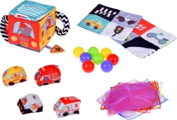 - 4 mașinuțe moi: ambulanță, taxi, mașină de pompieri, poliție