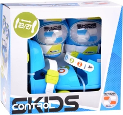Vă prezentăm un set minunat pentru micii patinatori, care include patine cu role ajustabile și protecții pentru genunchi și coate. Patinele se pun direct pe pantofi, ceea ce este o soluție ideală pentru copiii care învață să meargă, asigurând stabilitate și siguranță.