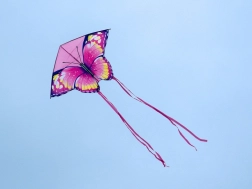Designul de fluture cu culori vii și aripi realiste asigură că acest zmeu va atrage atenția tuturor privitorilor.