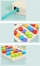 Jocul din lemn are diverse modele pentru o învățare ușoară a culorilor și coordonării. Susține creativitatea și concentrarea copiilor.