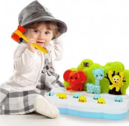 Datorită efectelor luminoase și sonore care se activează în timpul jocului, copiii se vor distra o perioadă mai lungă de timp. Dispozitivul este alimentat de baterii, permițând distracția fără fir oriunde. Setul include un ciocan sigur și ușor, perfect adaptat mâinilor copiilor, realizat din materiale sigure și durabile. Designul colorat și prietenos și personajele simpatice de animale fac jocul foarte îndrăgit de copii și este, de asemenea, un cadou excelent.