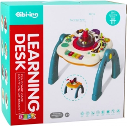 Pe o parte a mesei se află un panou educațional interactiv cu efecte variate care susțin jocul și explorarea. Oferă efecte sonore și luminoase și elemente mobile, cum ar fi un pian colorat, o tobă și rotițe mobile. Această activitate ajută la dezvoltarea simțurilor, a motricității fine, a coordonării mână-ochi și a gândirii logice.