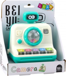 Luminile sclipitoare atrag atenția și încurajează interacțiunea. Jucăria imită un aparat foto și este ușoară și practică ideală pentru mâinile mici.