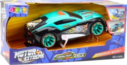 Mașina de curse este echipată cu două butoane funcționale. Primul buton declanșează o accelerare spectaculoasă, ridicând partea din față a mașinii, creând efectul de mers pe două roți din spate, și activează funcția turbo, care adaugă dinamism.