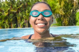 Lentilele rezistente din policarbonat cu filtru UV protejează ochii împotriva radiațiilor solare dăunătoare atât la piscinele exterioare, cât și la mare.