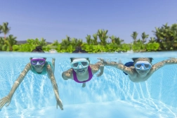 Masca de înot Bestway este proiectată pentru confort și siguranță maxime. Este echipată cu o curea ajustabilă, care se adaptează ideal la diferite mărimi ale capului, asigurând purtarea confortabilă.