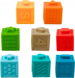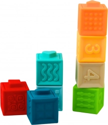 Cuburile educative din cauciuc aduc distracție și educație într-un singur loc. Pe fiecare parte a cubului vei găsi diverse structuri, cum ar fi numere, texturi, animale în relief și modele geometrice, care stimulează atingerea și cunoașterea. Fiecare cub are proeminențe și cavități special concepute, care permit conectarea lor, construirea turnurilor și combinarea acestora, dezvoltând astfel gândirea logică și răbdarea.