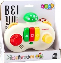 Această jucărie interactivă colorată este concepută sub formă de telecomandă, cu partea superioară având un design de ciupercă în culori roșu, verde sau galben, atrăgând astfel atenția copiilor. Consola este dotată cu butoane colorate, efecte sonore, rotițe cu textură bombată și trei butoane centrale în formă de triunghi, pătrat și cerc.