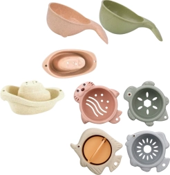 Toate elementele sunt fabricate din plastic sigur, netoxic, adecvat contactului cu apa, rezistent la utilizarea zilnică. O alegere excelentă pentru copiii mici și cei mai mari - ideal ca un cadou sau pentru a diversifica rutina zilnică de baie.